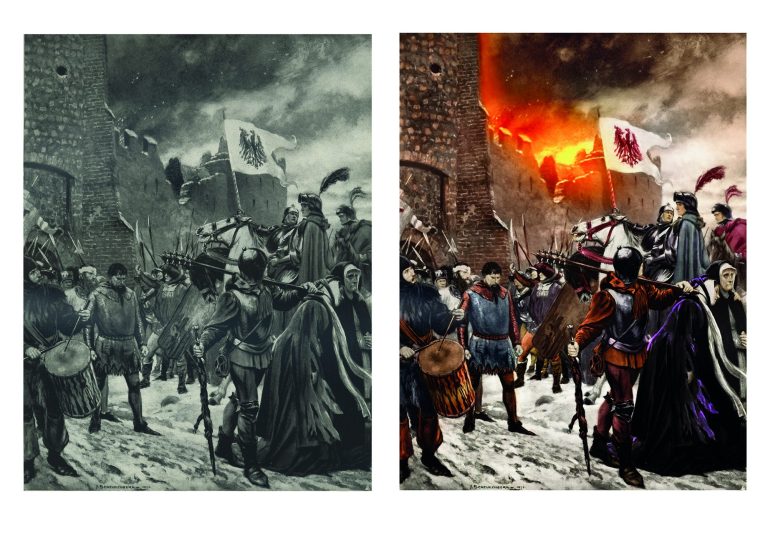 Schablonenmalerei war im Mittelalter eine verbreitete Technik zur Verzierung von Kirchenschränken, sowohl im sakralen als auch im profanen Bereich. Diese Technik ermöglichte es, wiederholbare Muster und Ornamente einfach und schnell auf Oberflächen aufzubringen.