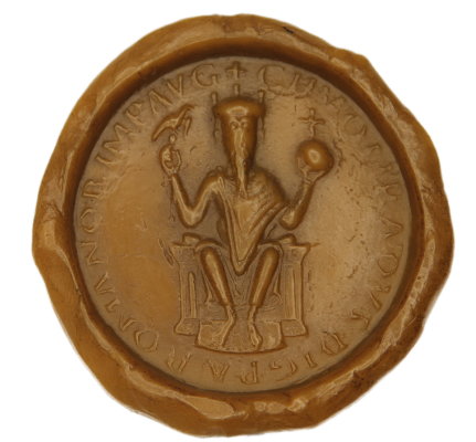 Otto III. hatte 997 erstmals ein Siegel schneiden lassen, auf dem der Kaiser in voller Statur thronend dargestellt ist.