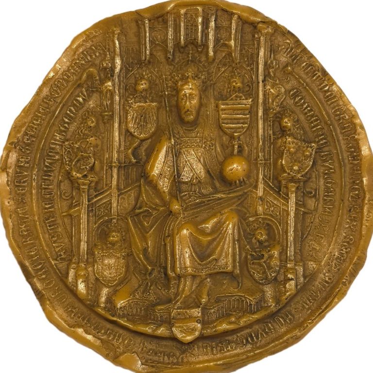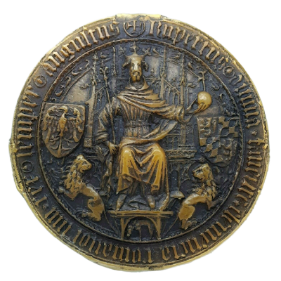 *Siegel des kaiserlichen Hofgerichts Sigismunds, durch Gottes Gnade und Milde Kaisers der Römer, allzeit Mehrers des Reiches, und Königs von Ungarn, Böhmen, Dalmatien, Kroatien usw.*