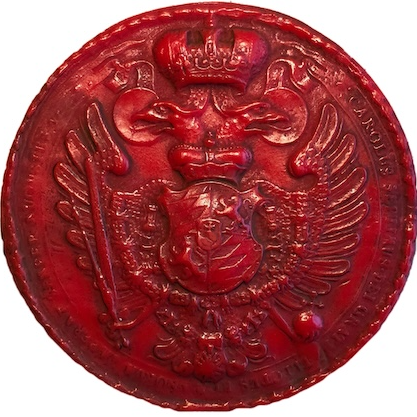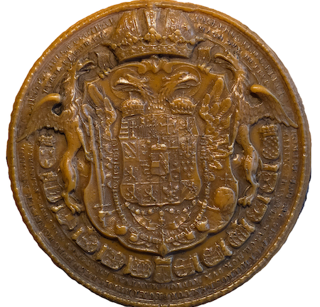 österreichischen, nicht mehr des deutschen Kaisers. Als Franz I. nach Zusammenbruch des französichen Reiches auf dem Wiener Kongreß 1814/5 im Konzert der Fürsten von ganz Europa über die Frage mitzuentscheiden hatte, ob man das alte Kaiserreich wiederherstellen sollte, da lehnte er ab. Nach Jahrhunderten war die Herrschaft der Habsburger zu Ende. Als das deutsche Volk sich wieder einen Kaiser wählte, war es der Preuße Wilhelm I., der den Thron erhielt. Franz starb 1835 als erster Kaiser von Österreich. Sein Siegel ist bis auf die Umschrift identisch mit dem seines Vaters Leopold II. Daß Franz sich nur dessen Siegel umschneiden ließ, markiert sein Streben nach Sparsamkeit und spartanischer Lebensweise in Nachahmung der persönlichen und politischen Linie seines Onkels Josef II.