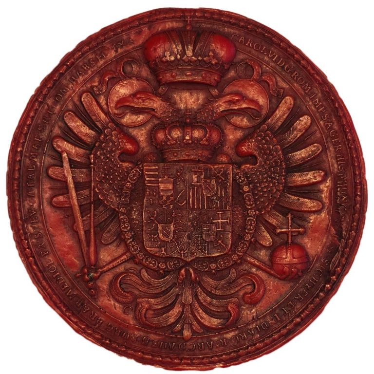 Karl VI. von Gottes Gnaden Kaiser der Römer, allzeit Mehrer des Reiches, König von Deutschland, Spanien, Ungarn, Böhmen, beider Sizilien, von Jerusalem und Indien, Erzherzog von Österreich, Herzog von Burgund, Brabant und Mailand, Fürst von Schwaben und Katalonien, Markgraf des Heiligen Römischen Reiches, Graf von Habsburg, Flandern und Tirol