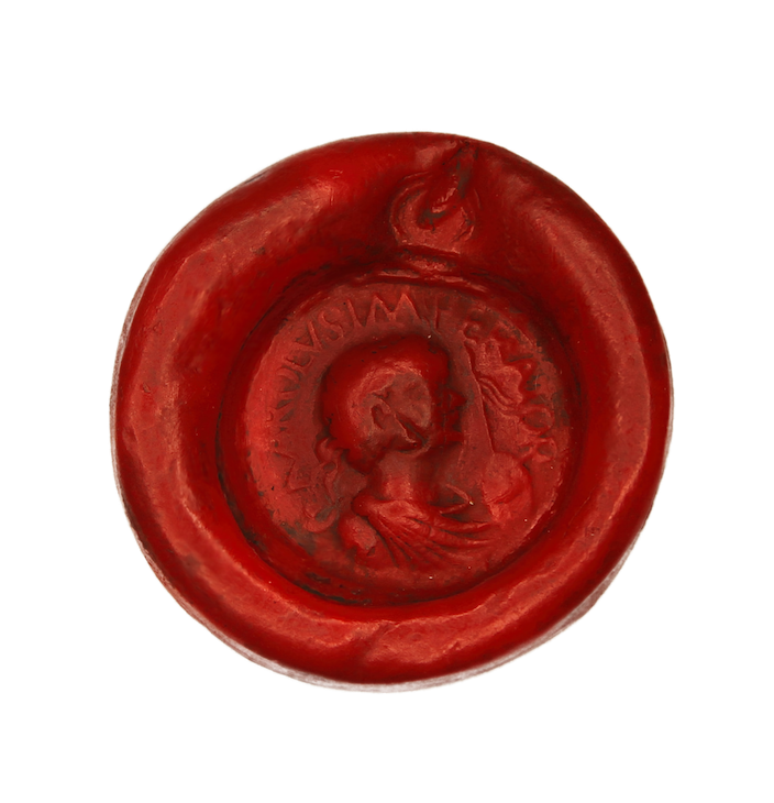 Bei letzterem handelt es sich um eine antike Gemme mit Bacchantendarstellung, ein Typar also, bei welchem es ganz offensichtlich nicht auf die Abbildung des Besitzers ankam.
