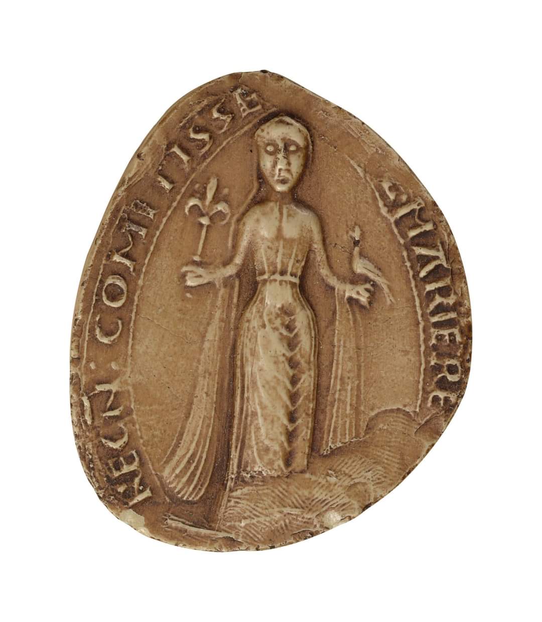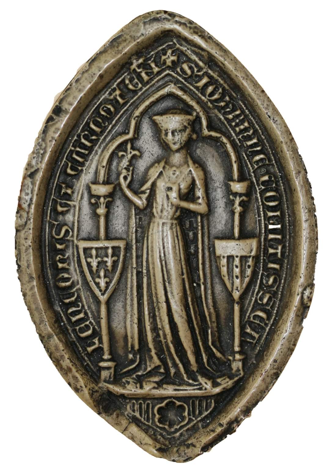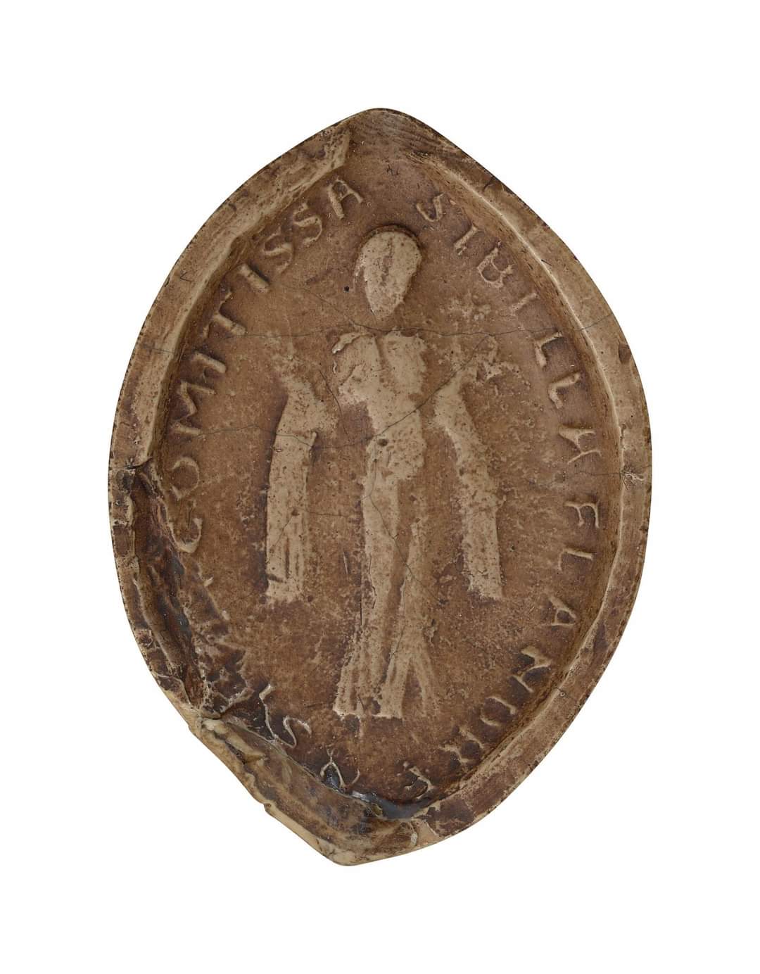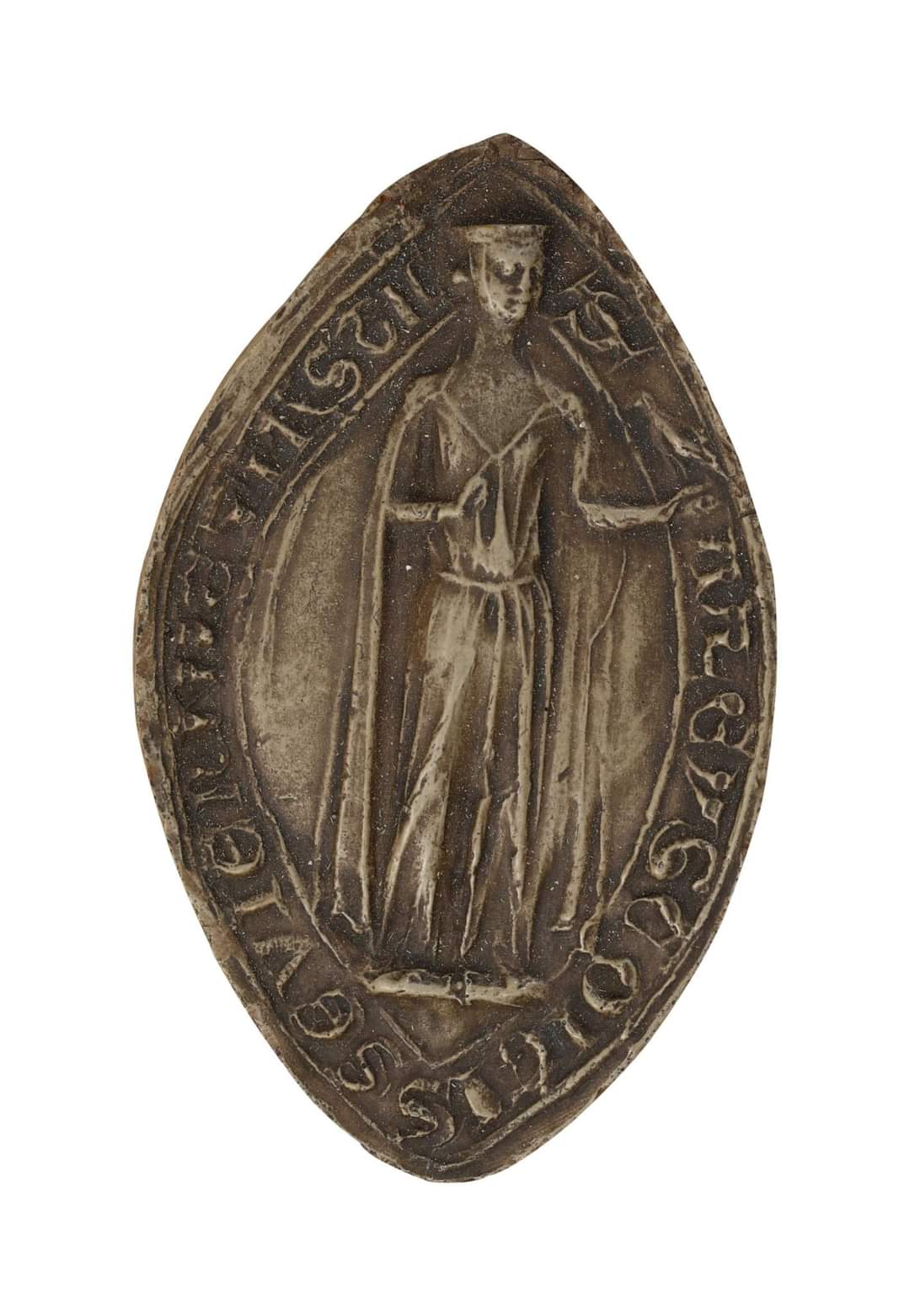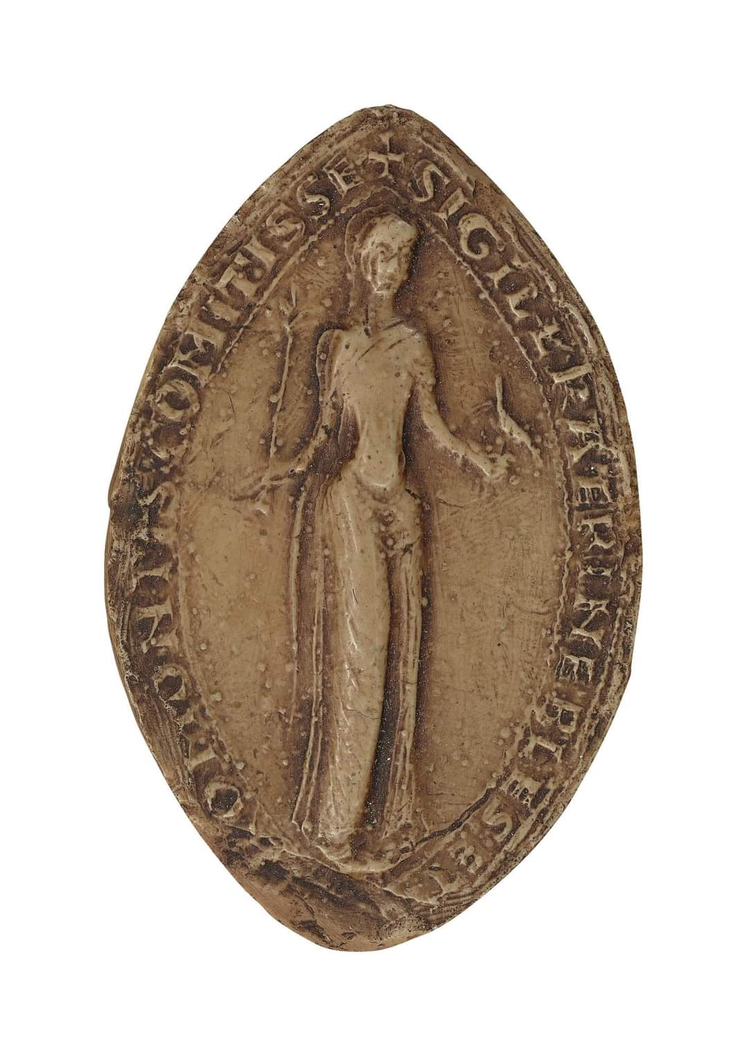 - Form: Meist spitzoval, was sie optisch von den oft runden Männersiegeln abhob und Platz für stehende Ganzkörperporträts bot.
