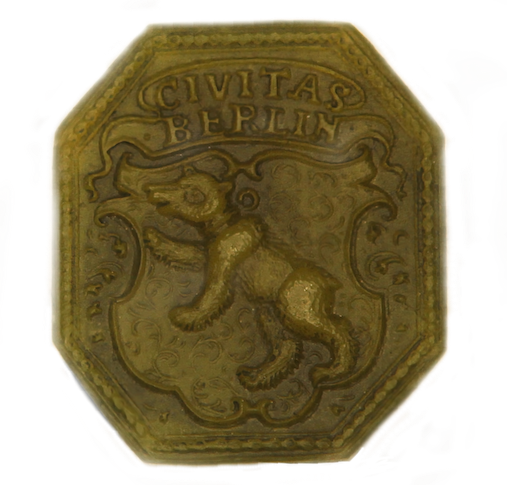 In dem achteckigen Siegelbild erscheint der nach (heraldisch) rechts aufsteigende Bär erstmals allein in dem mit Arabesken verzierten Wappenschilde. Über dem Schild steht lediglich die zweizeilige Inschrift: CIVITAS BERLIN (Stadt Berlin). Die silberne Stempelplatte, die in das Jahr 1539 datiert wird, befindet sich im Stadtmuseum (zu dem das ehemals selbständige Märkische Provinzial- Museum jetzt gehört).