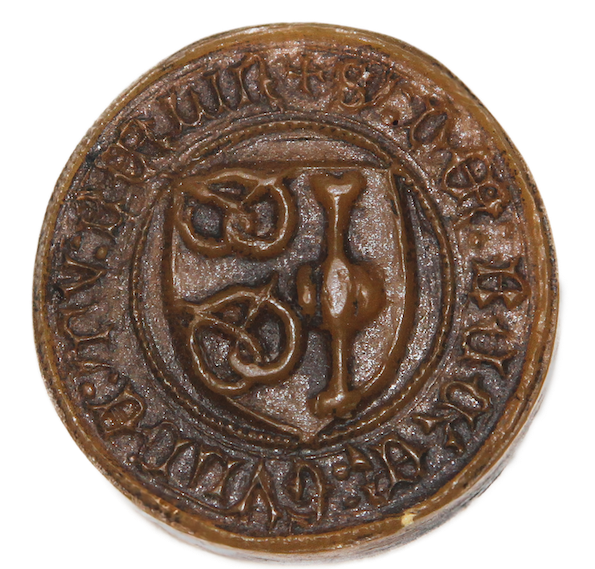 Das Siegelbild zeigt einen Schild mit zwei übereinander liegenden Brezeln,