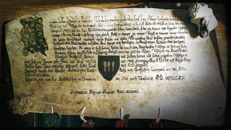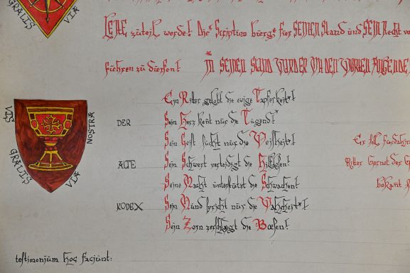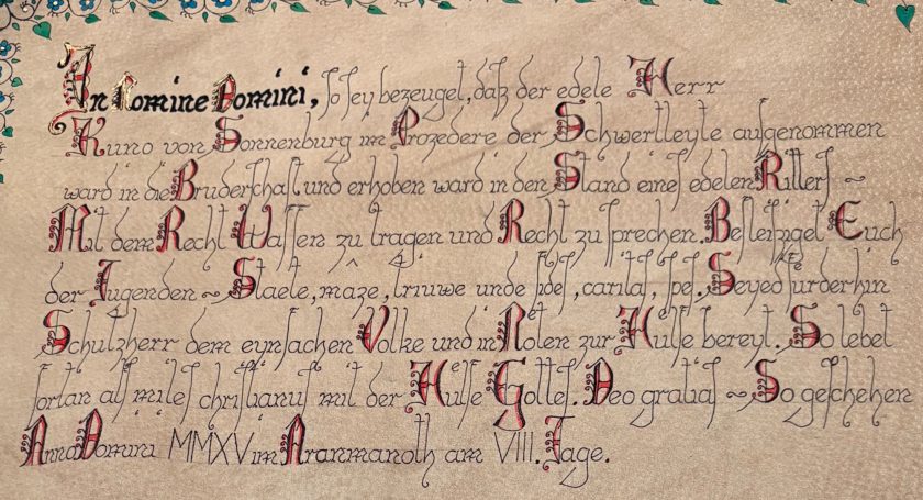 Diese schöne Ritterstandsurkunde wurde geschrieben und gemalt von Ralf von Räuschhaus