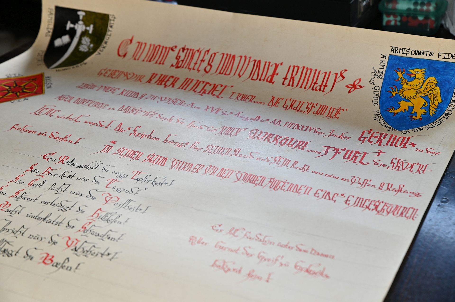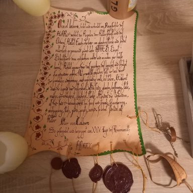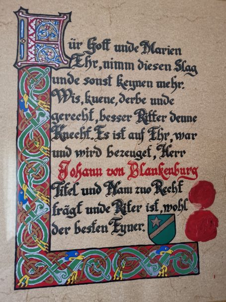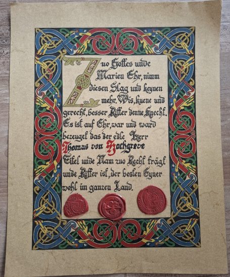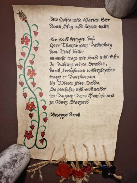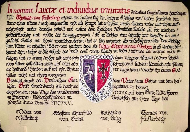 Diese schöne Ritterstandsurkunde wurde geschrieben und gemalt von Peter von Stein (RIP)