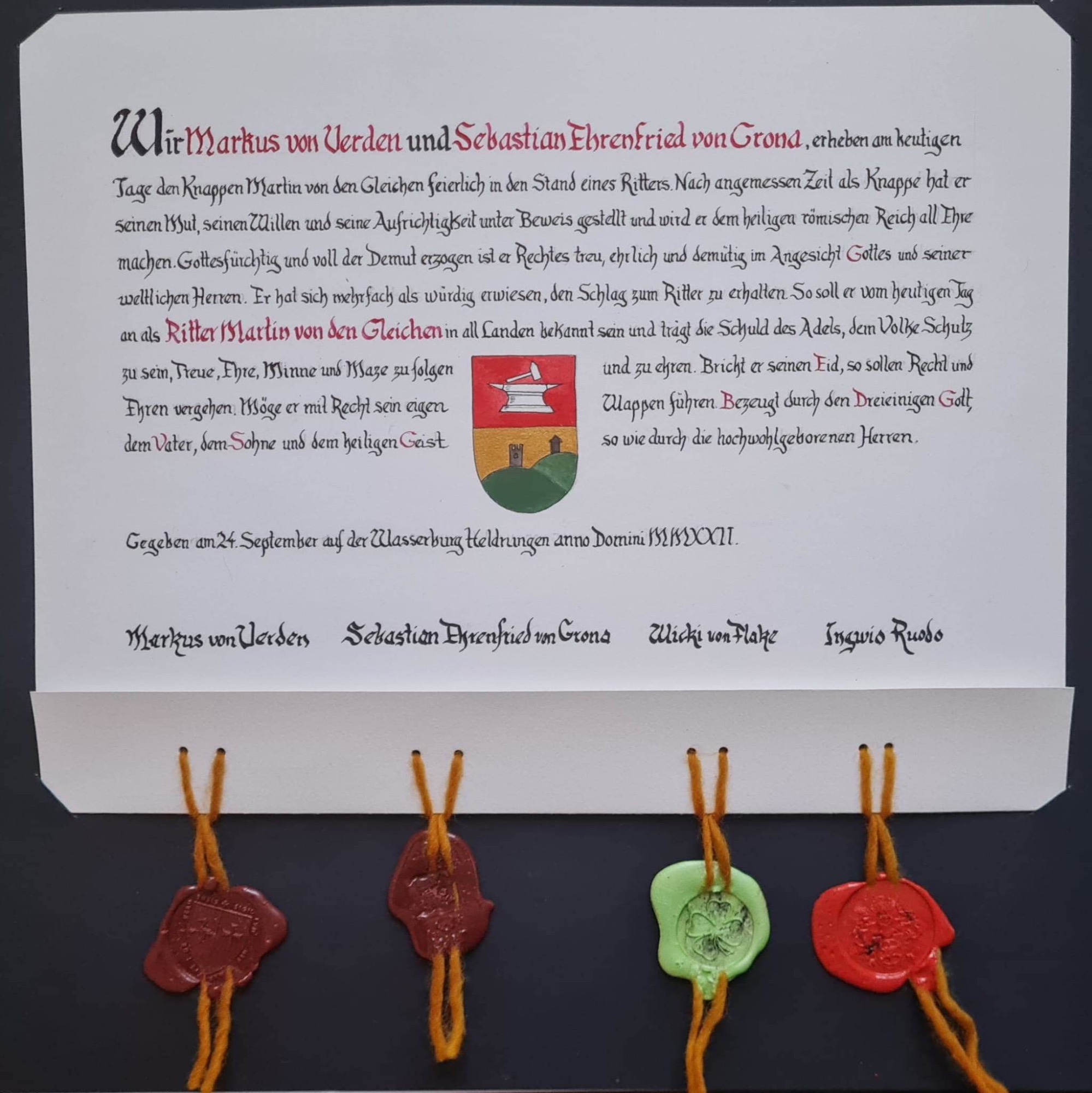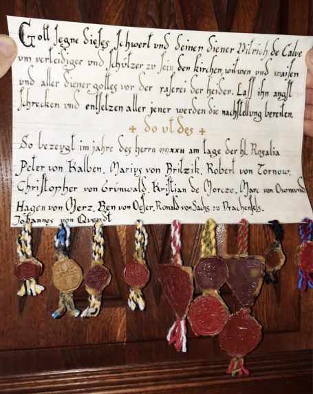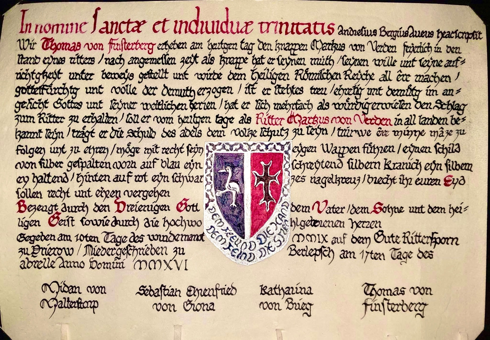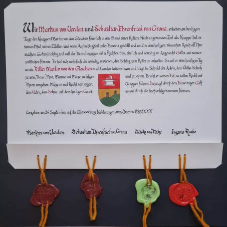 Diese schöne Ritterstandsurkunde wurde geschrieben von Holger Schwerin