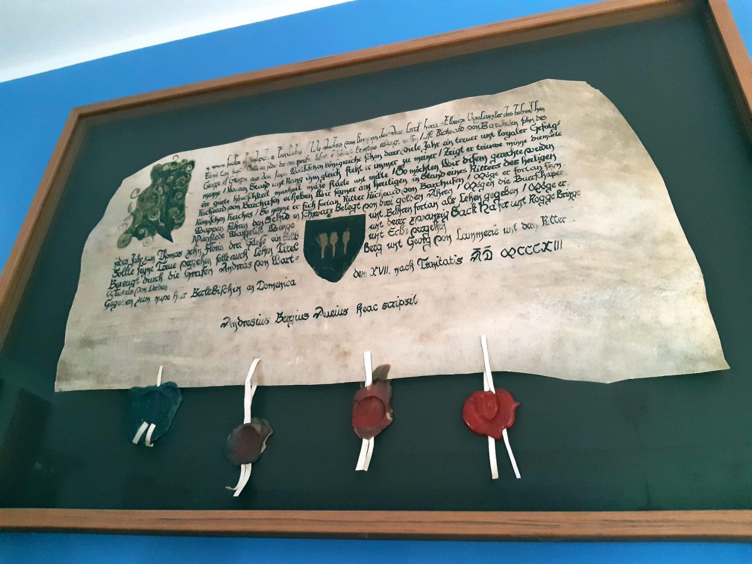 Diese schöne Ritterstandsurkunde wurde geschrieben von Andres vom Berg an der Aue